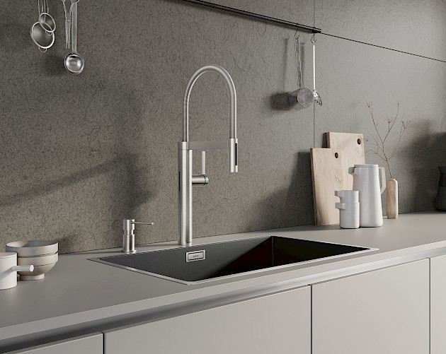 Funktionalität in ihrer schönsten Form zeigt sich in der neuen Generation von BLANCOCULINA-S II in besonders edlen Oberflächen. Ob PVD steel, black matt oder – ganz neu – satin dark steel und satin platinum, jede der vier faszinierenden Ausführungen begeistert mit einer zeitlos ansprechenden Optik. BLANCOCULINA-S II Sensor ist in PVD steel erhältlich. Hochwertige Fertigung und feinste Veredelung gehen Hand in Hand. Für eine Planungssituation mit begrenztem Raumangebot unter einem Oberschrank hat BLANCO auch die kompakte BLANCOCULINA-S II Mini neu aufgelegt.