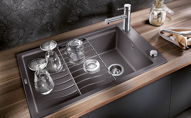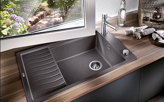 Dass sie dabei auch optisch äußerst attraktiv sein können, beweist jetzt Blancoelon XL 6 S. Die neue Silgranit-Spüle verfügt über ein äußerst geräumiges Becken mit Abtropffläche und punktet dabei mit kompakten Außenmaßen. Ein echter Hingucker ist das raffinierte Wellendesign der modern gestalteten Spüle.